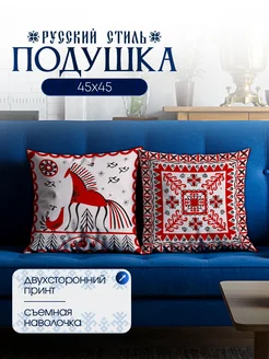 Подушка декоративная диванная Россия 45х45 мезенская роспись