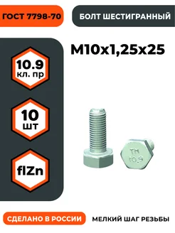 Болт М10х1,25х25 ГОСТ 7798-70 КП 10.9, высокопрочный, оц