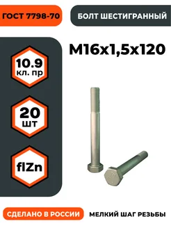 Болт М16х1,5х120 ГОСТ 7798-70 КП 10.9, высокопрочный, оц