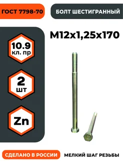 Болт М12х1,25х170 ГОСТ 7798-70 КП 10.9, высокопрочный, оц