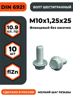Болт с фланцем М10х1,25х25 DIN 6921, КП 10.9 оц,без насечек