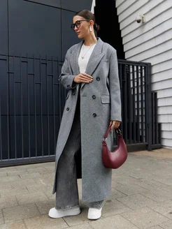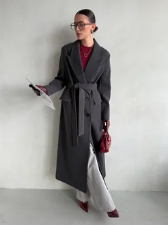 Пальто длинное серое