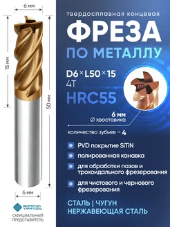 Фреза Концевая D6*L50*15 4T по металлу 55HRс