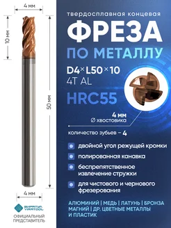 Фреза Концевая D4*L50*10*4F AL по металлу 55HRс