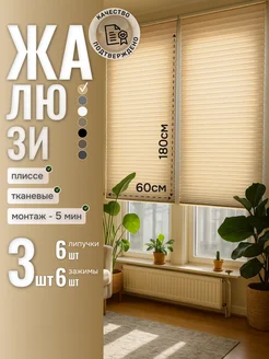 Самоклеящиеся жалюзи плиссе на окна из ткани 60х180 см 3шт