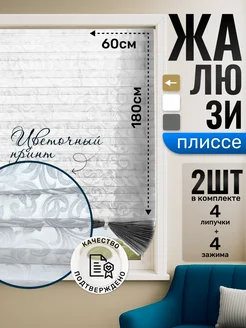 Жалюзи плиссе самоклеящиеся с цветочным узором 60 180