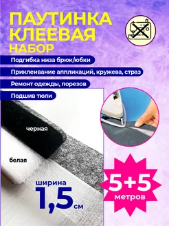 Паутинка клеевая белая и черная, 1,5 см, по 5м, термоклеевая