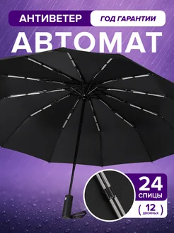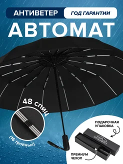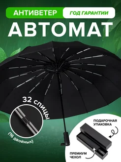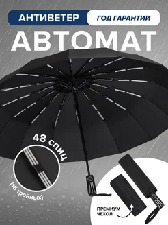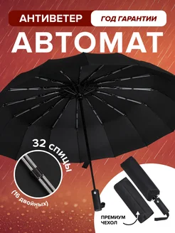 Автоматический зонт антиветер усиленный 16 спиц черный