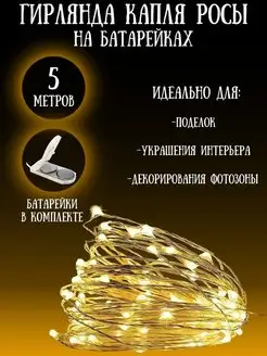 Светодиодная гибкая гирлянда нить на батарейках 5м