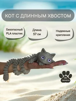 Подвижная 3Д игрушка серый кот с длиным хвостом