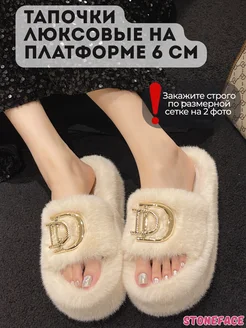 Тапочки меховые пушистые на платформе