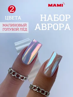 Втирка для ногтей набор радужная пигмент единорог Аврора