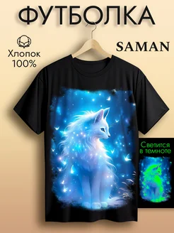 Футболка хлопок с принтом Кошка белая