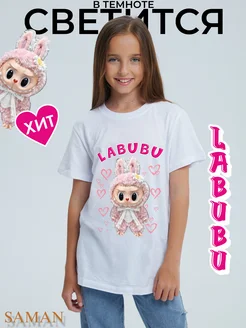 Футболка Трендовая Светящиеся В Темноте Лабубу Розовая