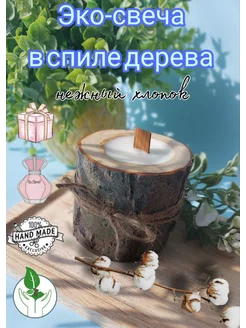 Ароматическая Эко-Свеча в спиле дерева "Нежный хлопок"