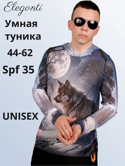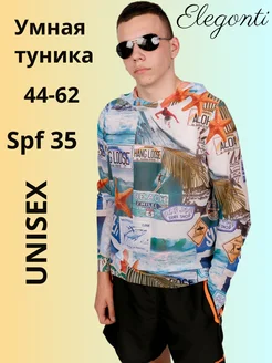 Туника пляжная, умный купальник SPF 35 с капюшоном