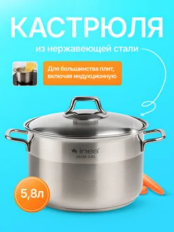 Кастрюля нержавеющая сталь для индукционной плиты 5.8 л