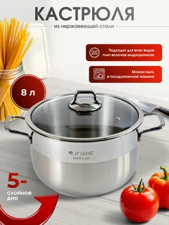 Кастрюля нержавеющая сталь для индукционной плиты 8 л