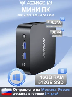Мини ПК Intel N150 16 ГБ озу и 512 ГБ SSD Windows 11,черное