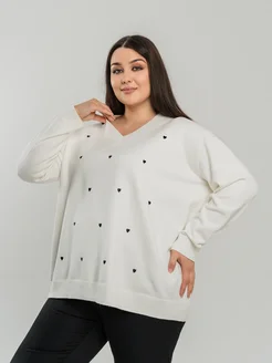 Вязаный свитер с V‑вырезом и мелкими красными сердечками