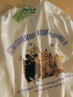 Топ футболка оверсайз с котиками y2k