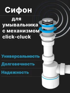 Сифон для умывальника и раковины в ванной и кухне клик клак