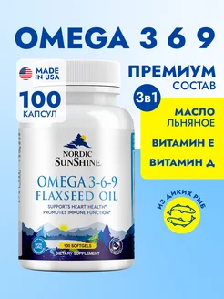 Омега 3 6 9 Flaxseed с льняным маслом Рыбий жир 100 капсул