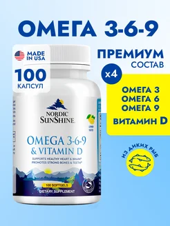 Омега 3 6 9 Рыбий жир витамин D 100 капсул