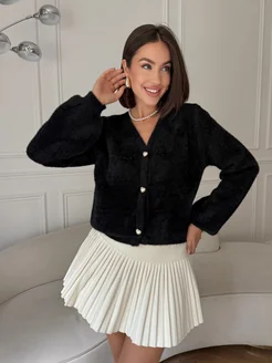 Кардиган укороченный пушистый на пуговицах