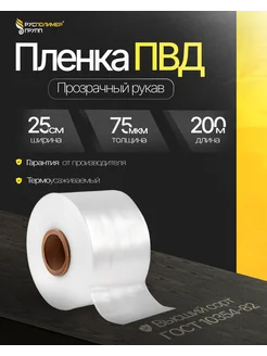 Пленка упаковочная ПВД рукав термоусадочный 25 см, 75 мкм