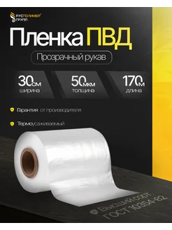 Пленка упаковочная ПВД рукав термоусадочный 30 см, 50 мкм