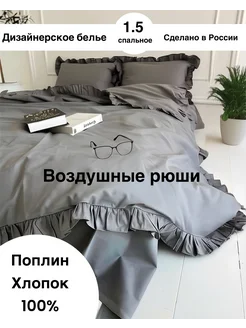 Постельное белье с рюшами, 1.5 спальное,Поплин
