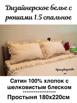 Постельное белье с рюшами, 1.5 спальное.Вареный хлопок