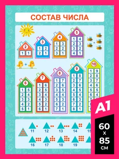 Обучающий плакат от 1 до 20 для детей A2