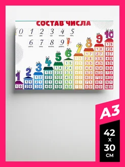 Обучающий плакат от 1 до 10 для детей A3