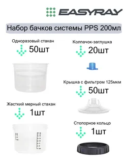 Набор одноразовых бачков PPS 125мкм 200мл для краскопульта