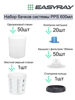 Набор одноразовых бачков PPS 125мкм 600мл для краскопульта