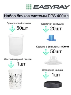 Набор одноразовых бачков PPS 125мкм 400мл для краскопульта