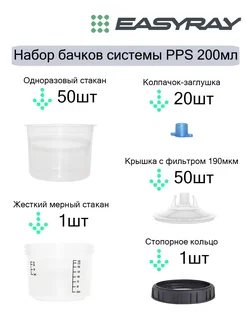 Набор одноразовых бачков PPS 190мкм 200мл для краскопульта