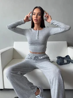 Костюм спортивный двойка лонгслив и брюки палаццо