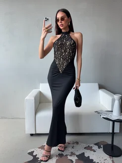 Платье вечернее кружевное с открытой спиной
