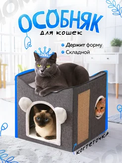 Домик лежанка для кошек большая с когтеточкой и игрушкой