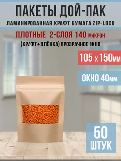 Пакеты Дой-Пак крафтовые 11,0х18,5см-50шт Окно-7,0см