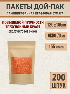 Пакеты Дой-Пак крафтовые 12,0х18,5см-200шт Окно-7,0см
