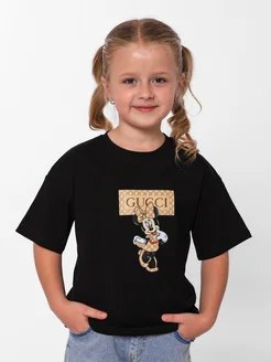 Детская футболка с принтом GUCCI и мики мауса черного цвета