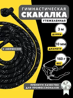 Черная скакалка с люрексом для гимнастики премиум 3м