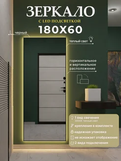 Зеркало с подсветкой SSG 180х60см. 3000К. Черное