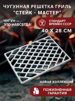 Решётка гриль для мангала чугунная "Стейк Мастер" 40 х 28 см