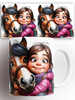 Кружка с принтом Лошадь с девочкой
