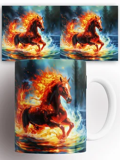 Кружка с принтом Красная огненная лошадь
